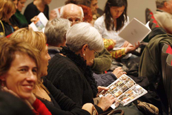 Dues participants en el projecte, la Fina i la Raquel, van explicar la seva experiència al públic reunit. La primera, que és la segona vegada que hi participa, va declarar que una obra en parella “és com començar a festejar, ja que hi ha molta conversa amb l’altra persona per tal de conèixer el que vol transmetre a l’obra”. Mentre que la Raquel, que enguany s’hi estrenava, va valorar “la connexió que s’estableix entre les dues persones durant tot el procés de composició de l’obra”.