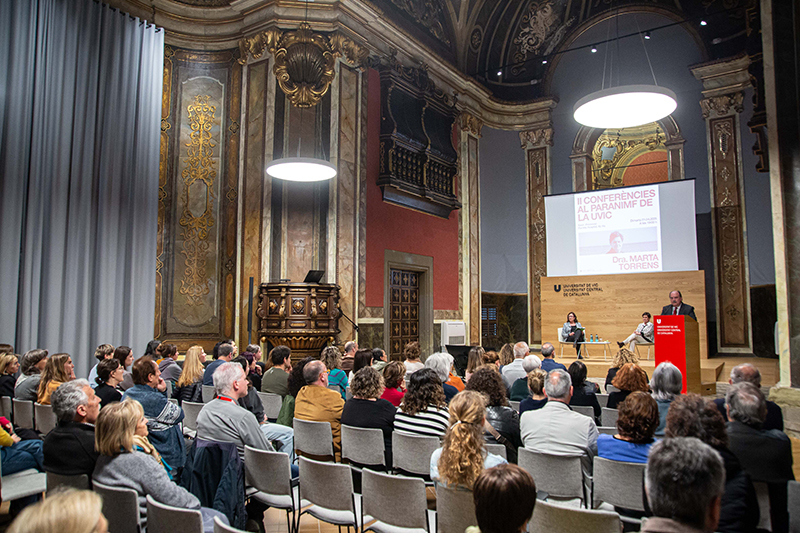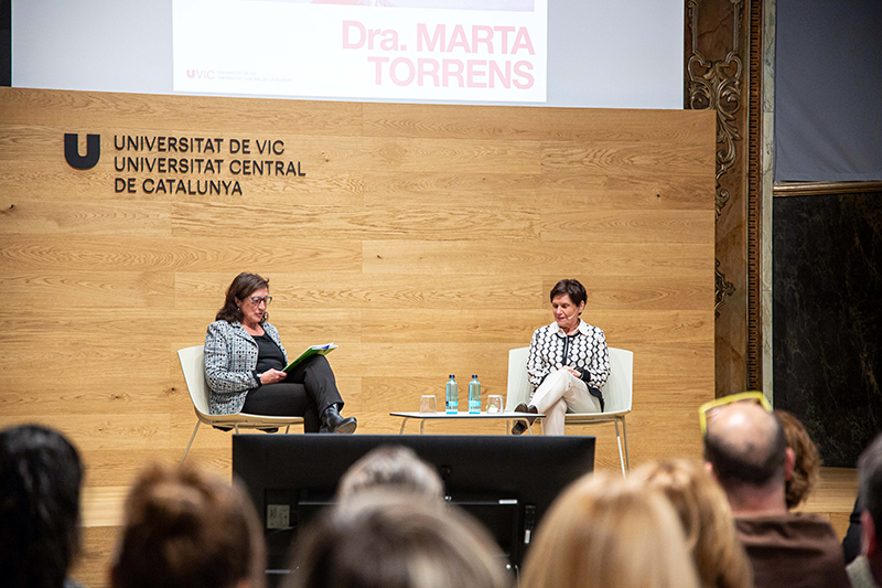 Dimarts va donar el tret de sortida al segon cicle de Conferències al Paranimf de la UVic-UCC amb la conversa entorn “El perill de les noves drogues”, entre la doctora Marta Torrens, catedràtica de Psiquiatria de la Facultat de Medicina de la UVic-UCC i la gerent d’Osonament, Mercè Generó.
