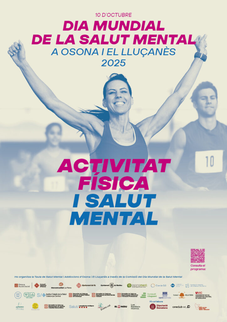 La Taula de Salut Mental i Addiccions d’Osona i el Lluçanès, a través de la Comissió del Dia Mundial de la Salut Mental i amb el suport de diverses entitats del territori, ha organitzat una programació durant el mes d’octubre amb l’objectiu de sensibilitzar la ciutadania sobre la importància de la salut mental. Aquest any, l’eix central és la relació entre activitat física i salut mental, posant de relleu com el moviment i l’esport contribueixen al benestar emocional i a la qualitat de vida.