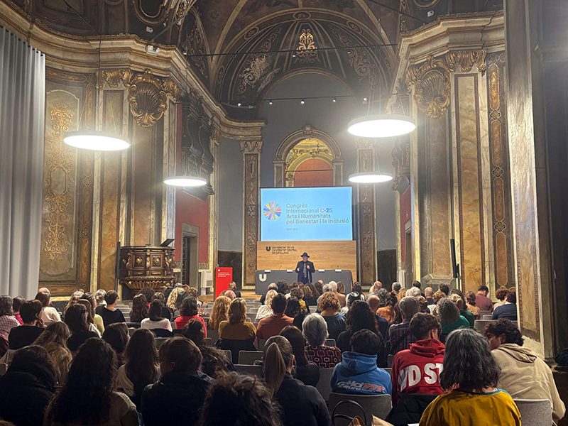 Avui s’està portant a terme el Congrés Internacional C-25 · Arts i Humanitats pel Benestar i la Inclusió, al Paranimf de la UVic-UCC. La jornada posa en valor el paper transformador de l’art i les humanitats en la salut i la inclusió social, amb ponents de reconeixement internacional com Christopher Bailey i Toni Dedeu (OMS), David Bueno (Càtedra de Neuroeducació UB-EDU1st) o Daisy Fancourt (University College London).
